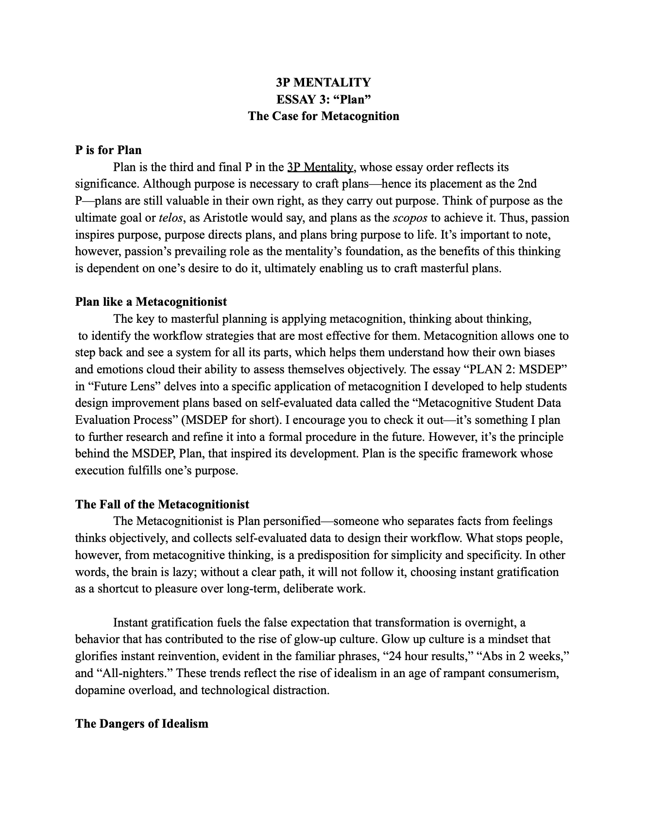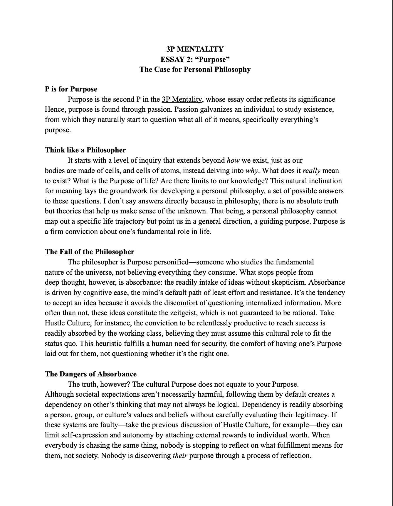 A series of 3 essays—“Passion,” “Purpose,” and “Plan”—that define a “P”